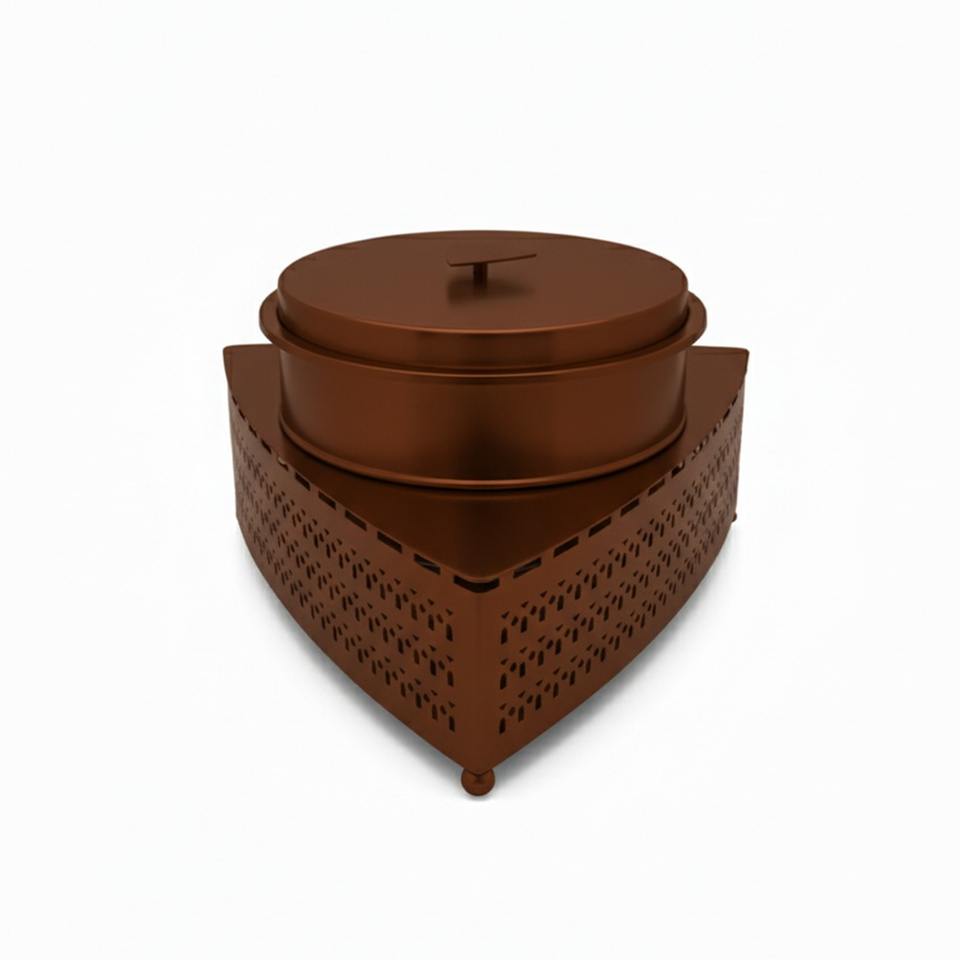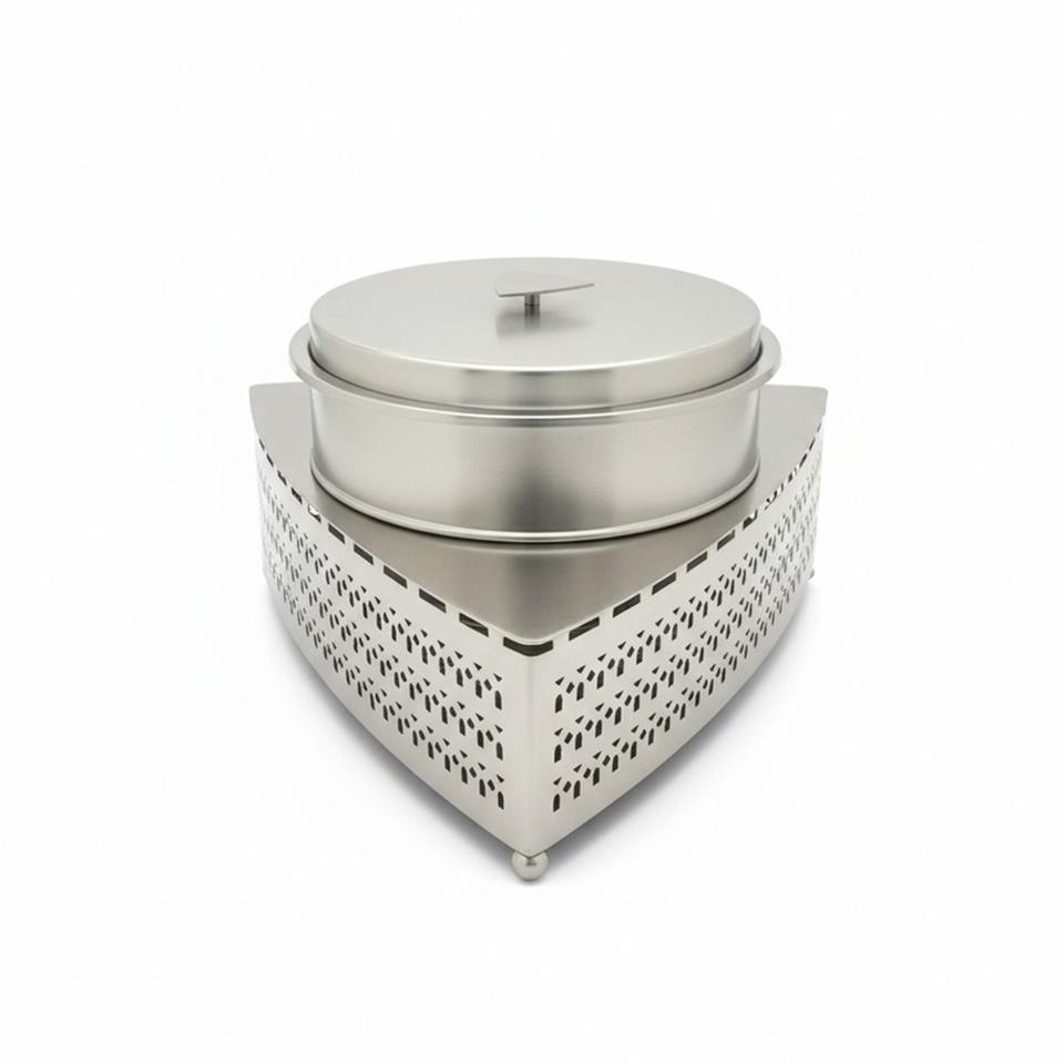 Recipiente para Calentar Comida de Acero Inoxidable con Diseño Geométrico Triangular Multicolor y Base Estampada para Buffet de Hotel y Catering