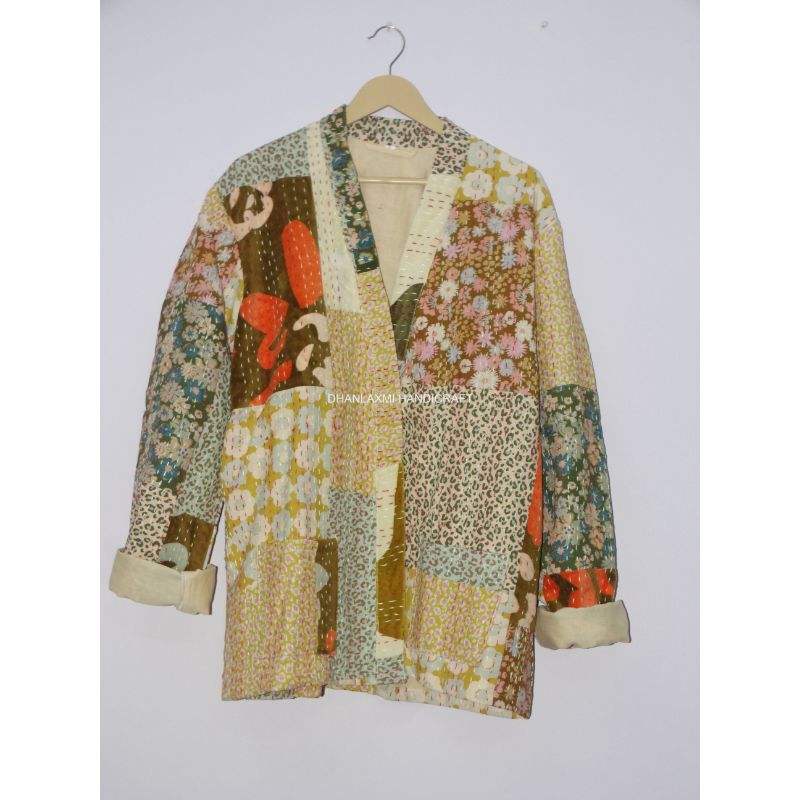 Abrigo largo de algodón estampado a mano para mujer, chaqueta Kantha étnica, parche tejido para invierno, venta al por mayor