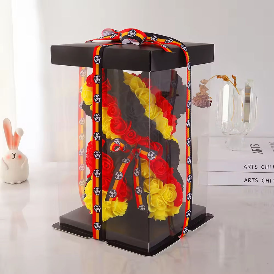 Oso de Peluche con Flores Preservadas de PE en Colores de Bandera de Varios Países, Lindo Animal de Peluche, Regalo para Aficionados al Deporte y Enamorados