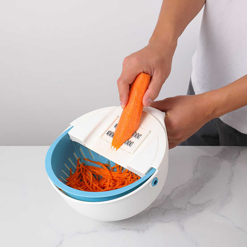 Cesta Multiusos con Escurridor, Cortador de Verduras, Rallador, Triturador de Patatas, Colador Giratorio, Picador de Rábanos, Pelador de Patatas Inteligente