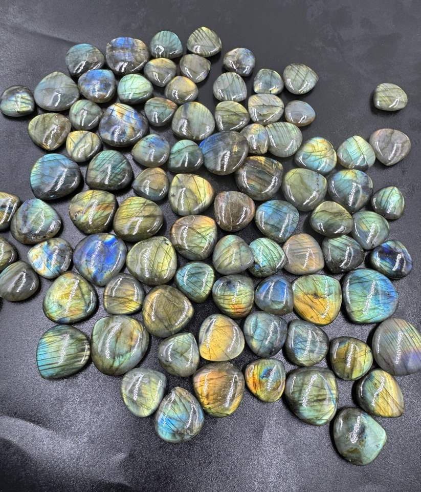 Alta calidad Multi Flashy Labradorita Suelta Suave Forma de corazón Cabujón Tamaño libre Natural Lote al por mayor para la fabricación de joyas