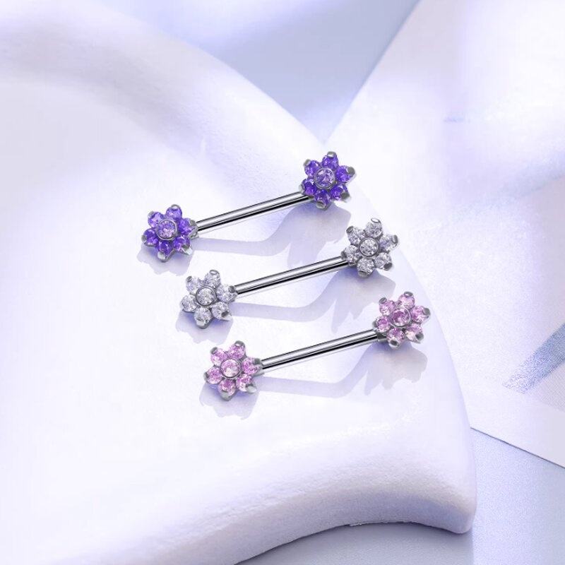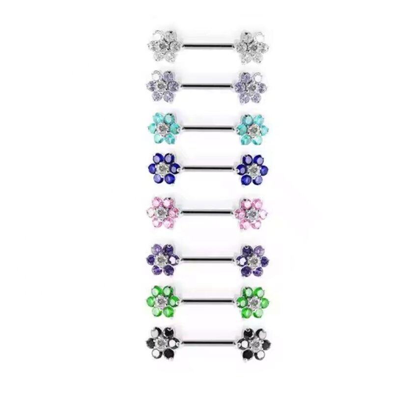 Anillos Piercing para pezón de acero con varias flores, Mancuernas
