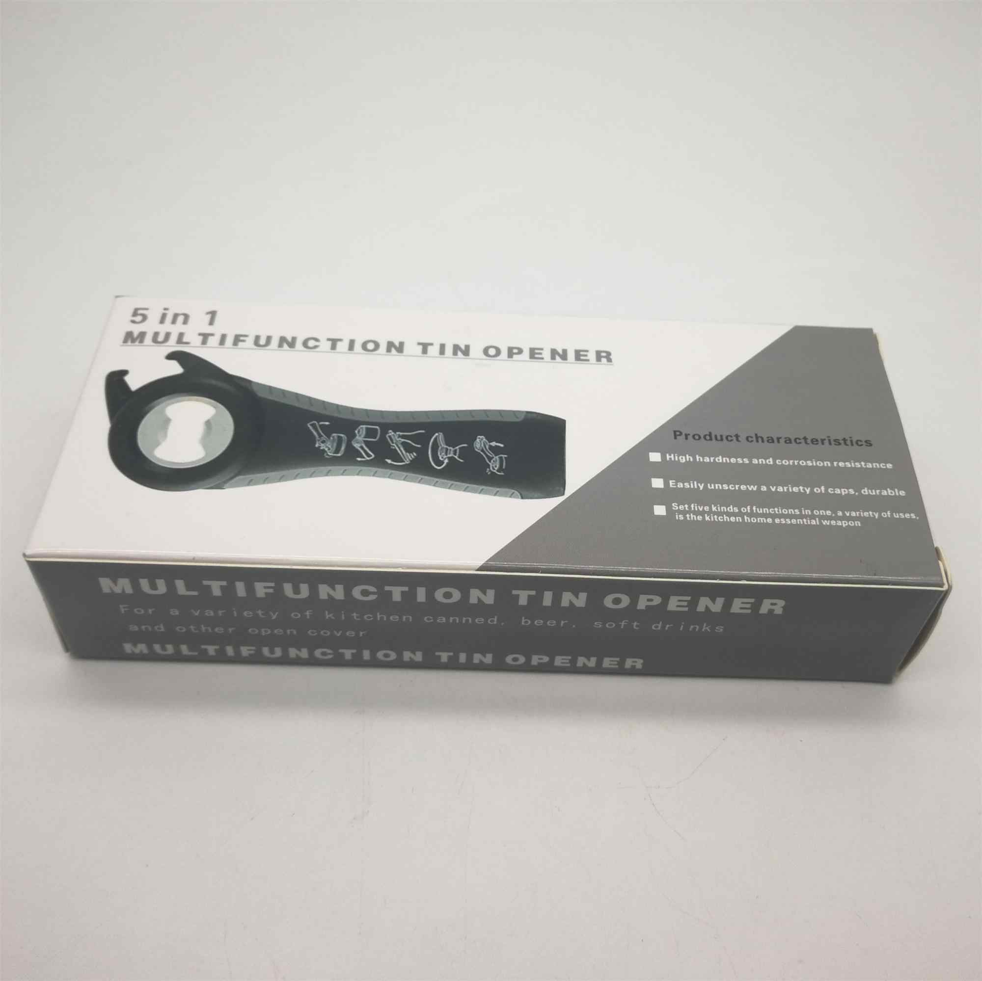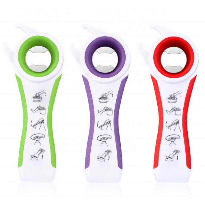 Multi función 5 en 1 tarro, lata, botella de vidrio y PET abrebotellas cocina gadget tool plástico