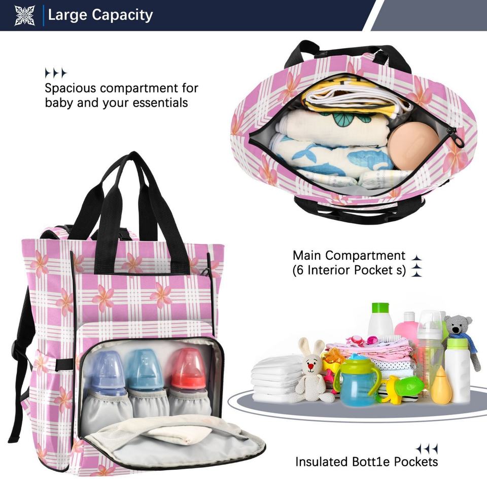 Bolsa de Pañales Multifuncional para Bebé, Mochila Impermeable de Viaje con Diseño de Flor de Plumeria Hawaiana, Mochila de Maternidad para Mamá