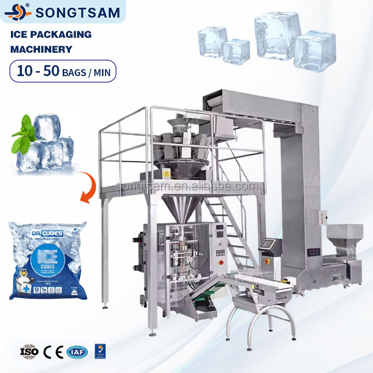 Máquina Multifunción para Envasado de Cubitos de Hielo VFFS, Pesaje y Llenado Automático, Envasado de Tubos de Hielo para Bolsas de 1 kg, 5 kg y 10 kg