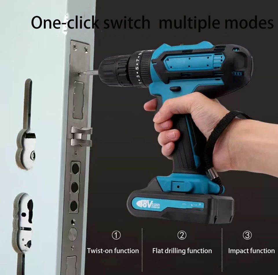 Taladro Eléctrico de Litio Recargable Multifunción, Taladro de Impacto Manual con Perforación Potente para Comercio Exterior