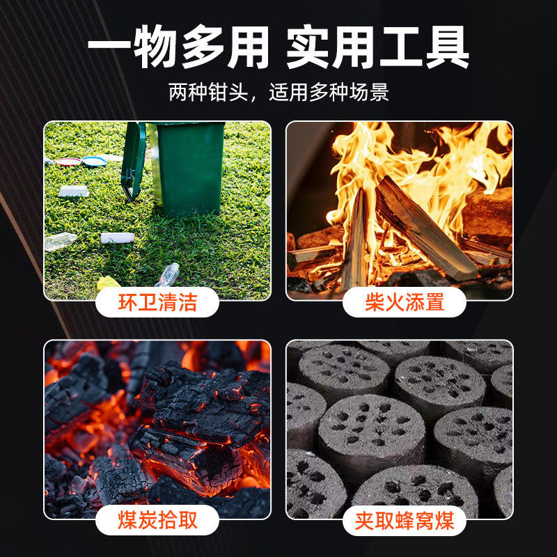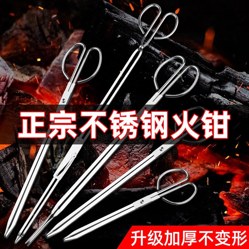 Multi Function Stainless Steel Fire Tongs Thickened Toothed For Charcoal And Sanitation Use