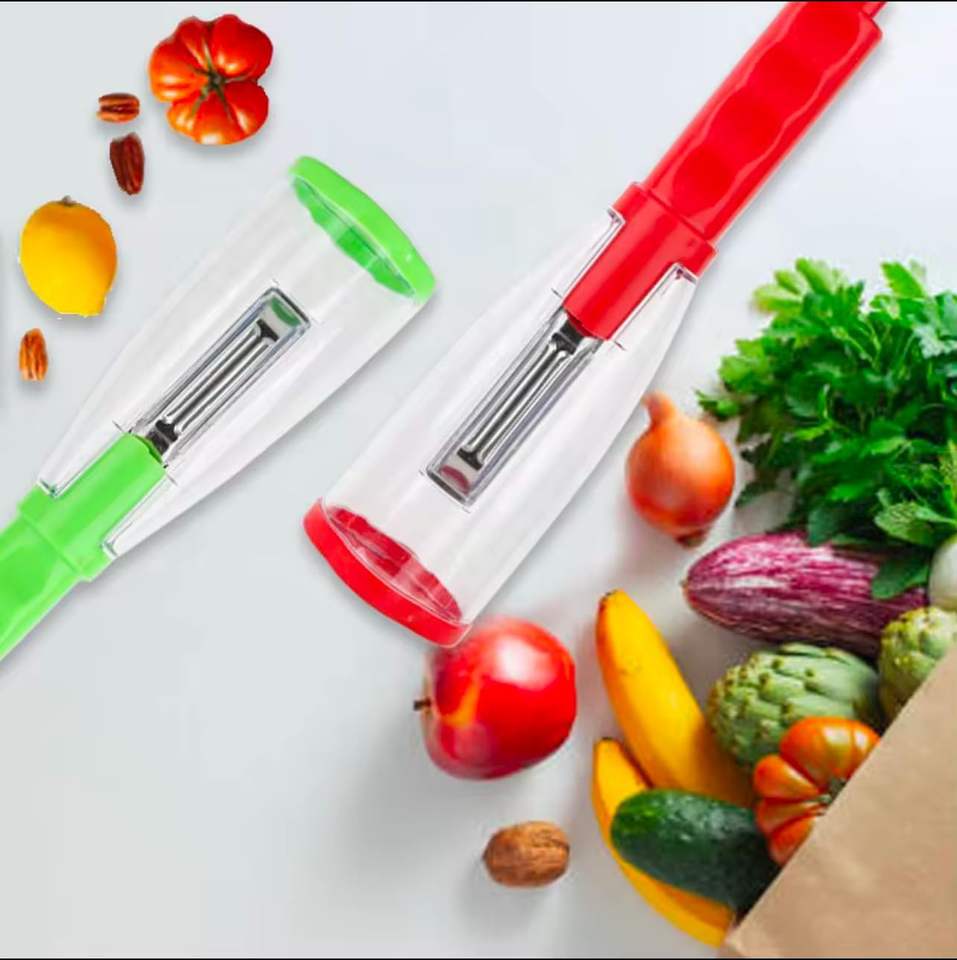Pelador de Verduras Manual Multifuncional de Acero Inoxidable con Contenedor de Plástico, Pelador de Frutas para Zanahoria, Patata y Manzana