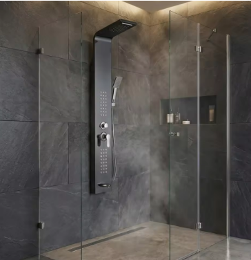 Panel de Ducha Multifunción de Pared con Lluvia, Ducha Manual y Jets Suaves, Diseño Moderno en Acero Inoxidable Cepillado para Hotel y Villa