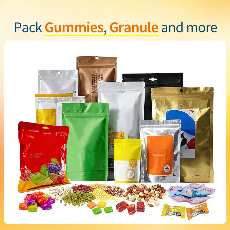 Tipos de bolsas aplicables:bolsas tipo almohada, bolsas stand-up, bolsas con boquilla, etc.