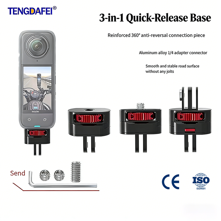 Adaptador multifuncional de 1/4 pulgadas Mini Base de liberación rápida 3 en 1 para cámaras de acción GoPro Hero11Xiaoyi GoPro13 DJI Osmo Action 12