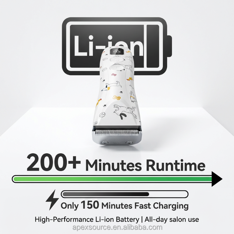 Tiempo de funcionamiento de 240 minutos: Garantiza una operación duradera, adecuada para sesiones de aseo prolongadas o múltiples mascotas.