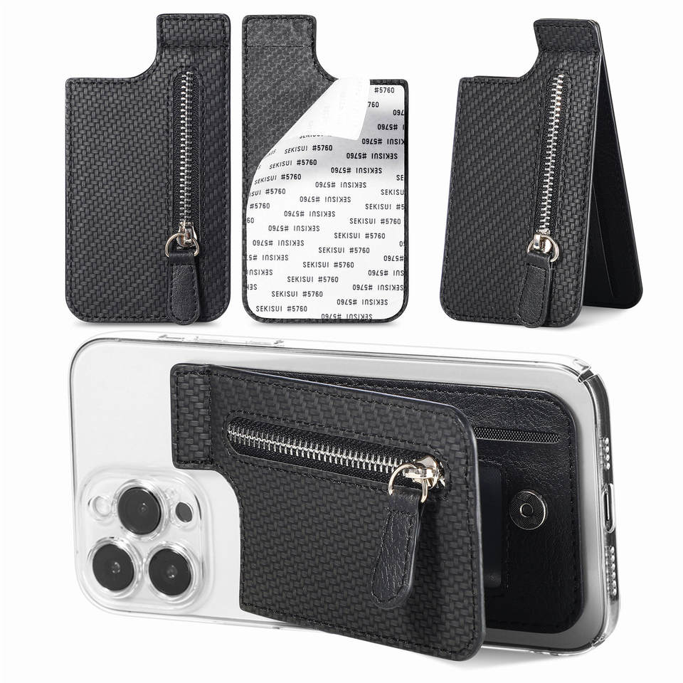 Set de Tarjetero Multifuncional de Fibra de Carbono Anticaídas, Impermeable, Magnético, con Cierre, para Teléfono Móvil