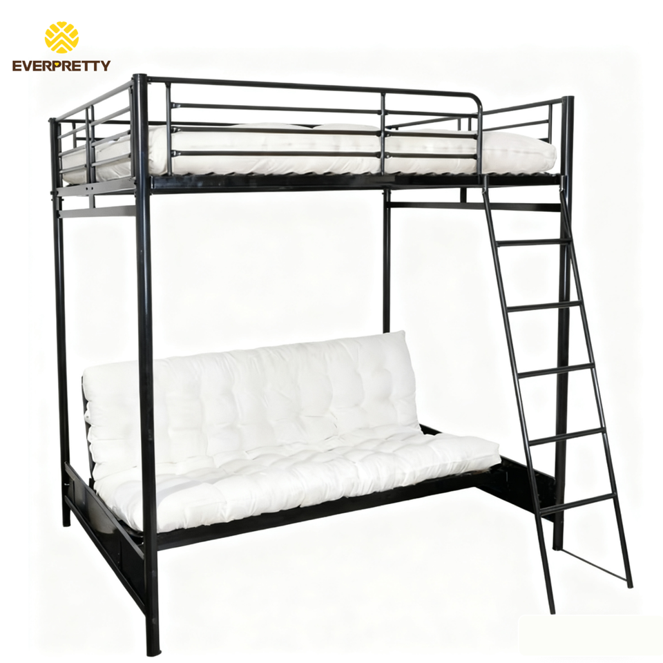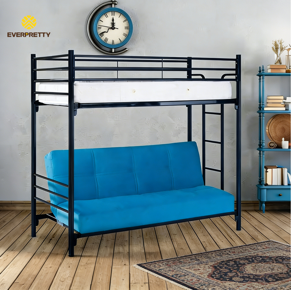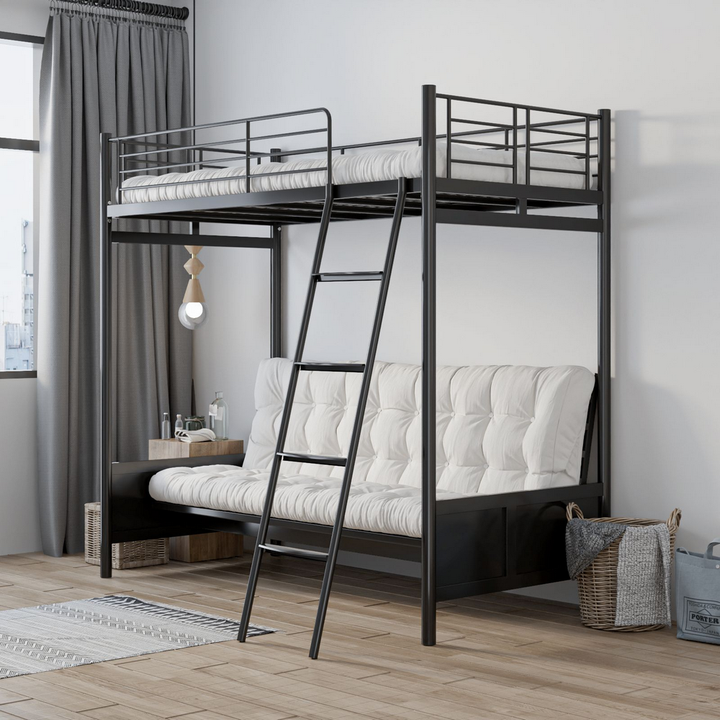 Cama Multifuncional Personalizada para Hostal, Apartamento Pequeño o Dormitorio, Cama Moderna Negra Plegable Tipo Sofá, Cama Litera con Estructura Metálica y Escalera