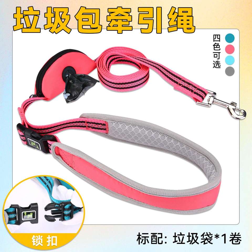 Correa Multifuncional para Perro de Nailon con Bolsa de Almacenamiento, Retráctil, Color Cian Rosa, Impermeable, Accesorios de Entrenamiento para Mascotas