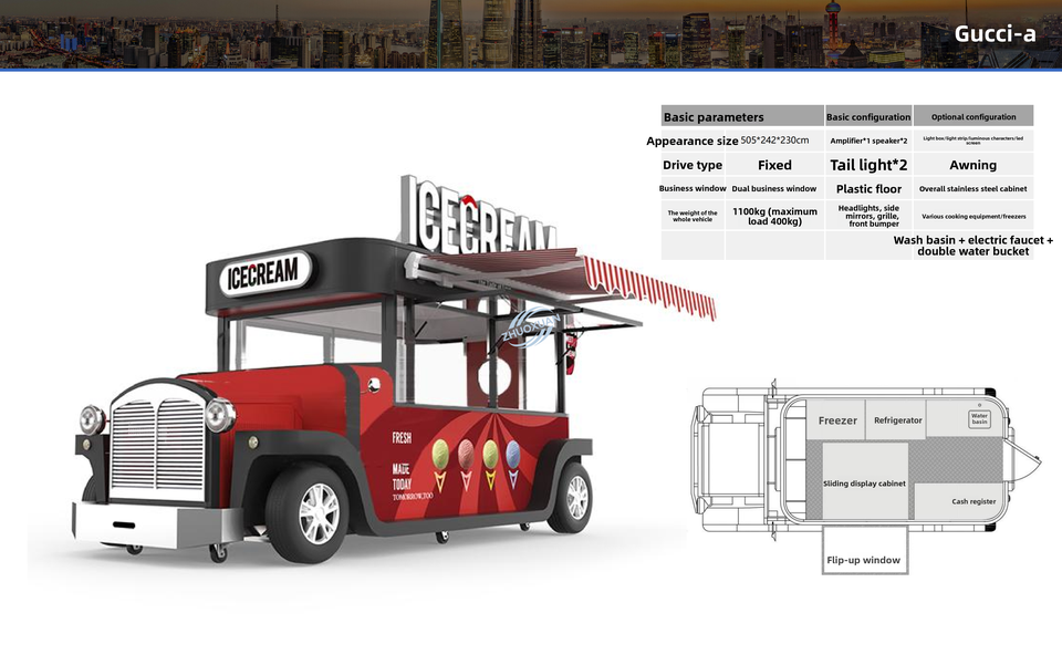 Carrito de Comida Eléctrico Multifuncional de Cuatro Ruedas, Carrito Móvil para Venta de Aperitivos Callejeros con Servicio de Té con Leche y Café