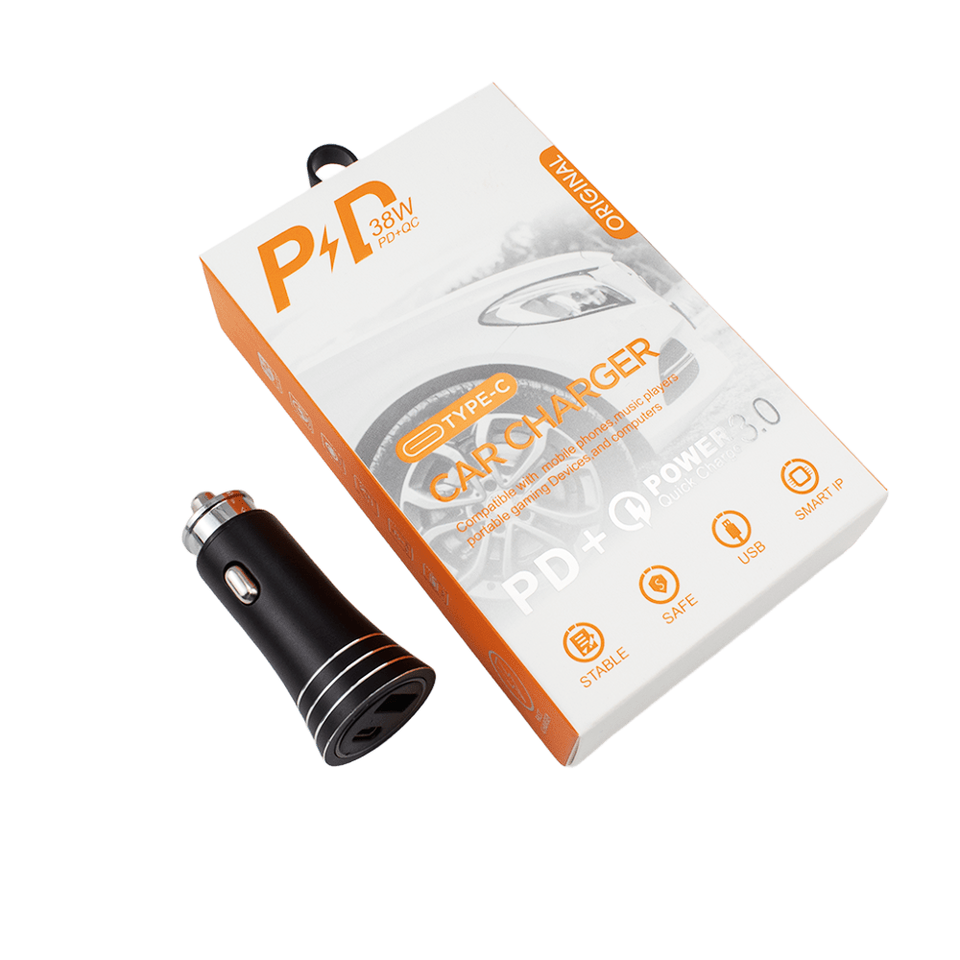 Cargador de coche PD18W de carga rápida multifuncional Puerto USB Tipo C Cargador de coche de material metálico