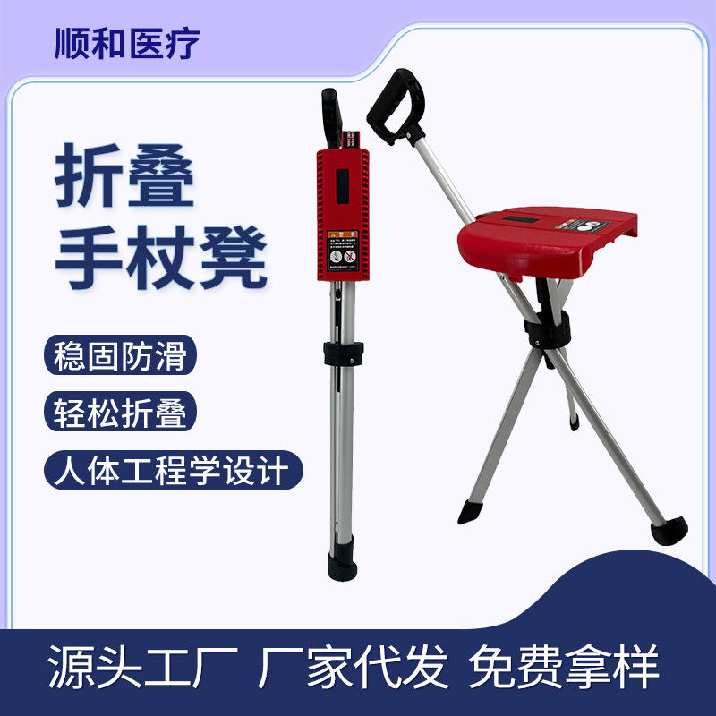 Silla de Bastón Plegable Multifuncional con Base Trípode Antideslizante para Uso en Jardín Exterior
