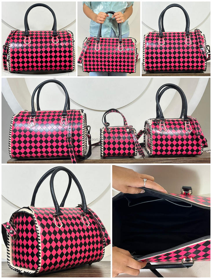 Bolsa de Viaje de Cuero a Cuadros Multifuncional Hecha a Mano, Gran Capacidad, Fabricante Mayorista, Bolsos de Moda para Mujer