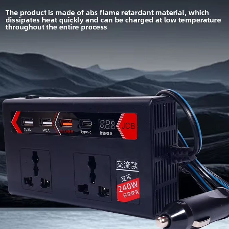 Cargador de coche multifuncional de alta potencia 12V24V a 220V Adaptador convertidor de potencia Cargador inversor de coche QC 3,0