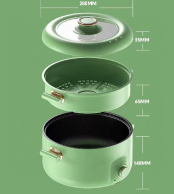 Olla caliente multifuncional Cocina de Vapor Eléctrica Electrodomésticos antiadherentes con tapa de vidrio templado