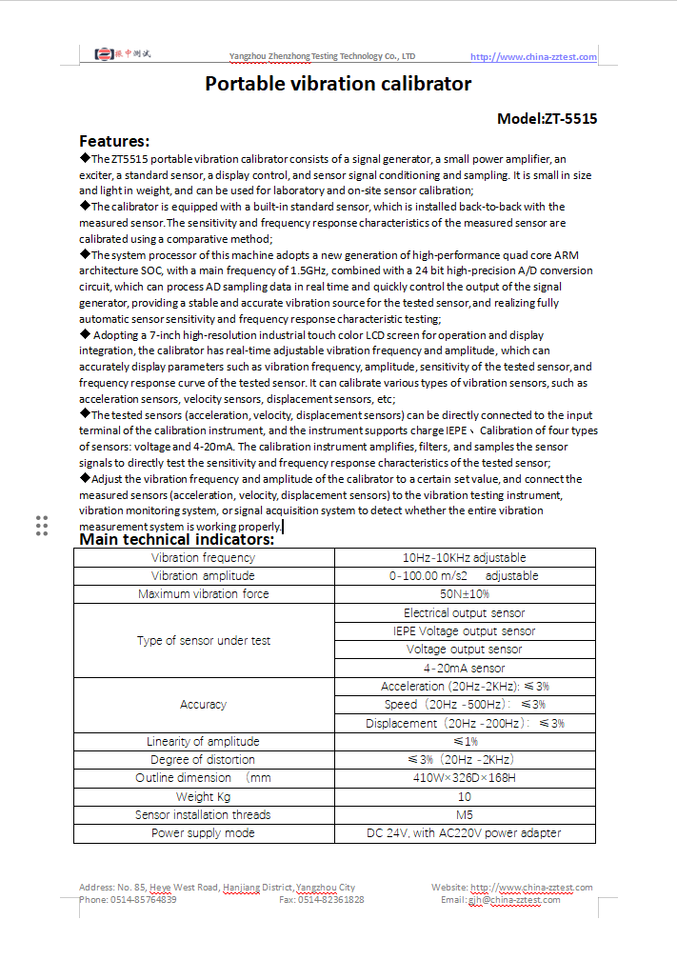 Vibration amplitude:0-100.00 m/s2 adjustable