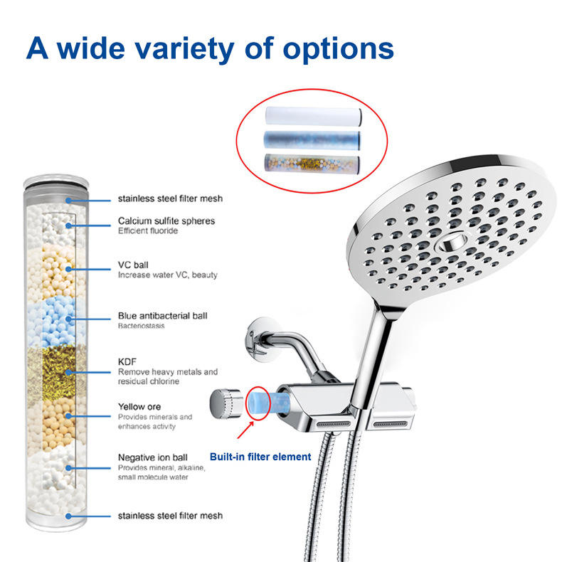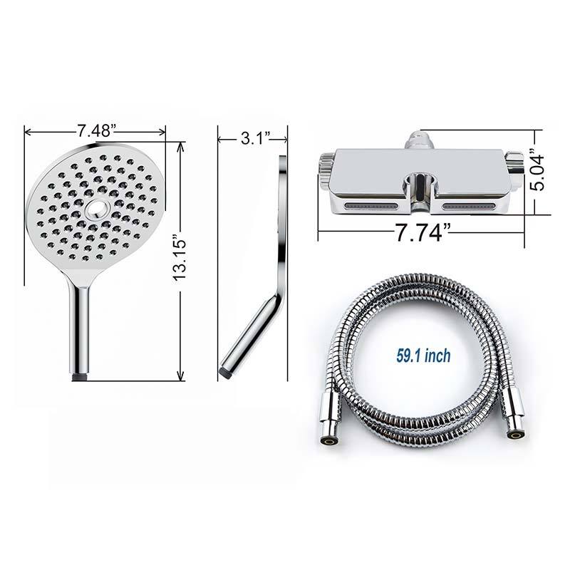 Juego de Ducha Multifuncional con Cabezal de Ducha de Mano con Filtro, Válvula de Cerámica, 1 Manija, Caudal de 7.0 GPM
