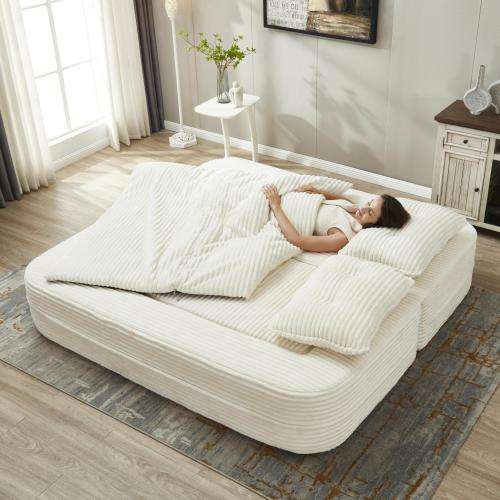 Sofá Cama Multifuncional con Chaise Longue Independiente, Sofá Cama de 3 Plazas de Pana para Sala de Estar y Dormitorio
