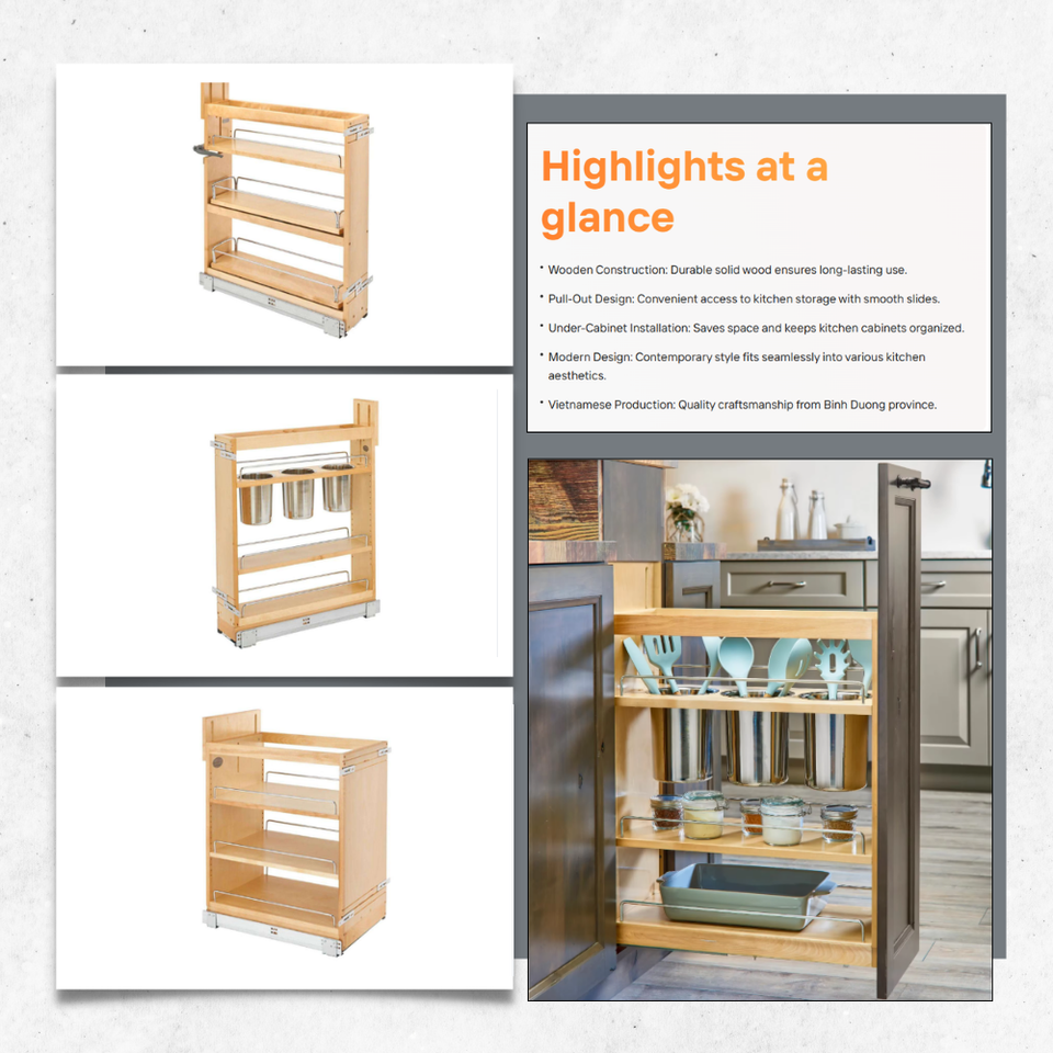 Organizador de Gabinete Extraíble Multifuncional de Madera con Cierre Suave, Estante Deslizante para Especias, Cajón para Gabinetes de Cocina y Baño