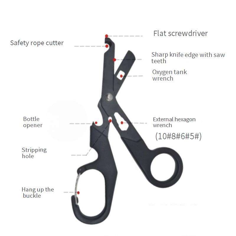 Tijeras Médicas Plegables Tácticas Multifuncionales con Mosquetón, Dispositivo de Primeros Auxilios Portátil, Tijeras de Supervivencia para Exteriores