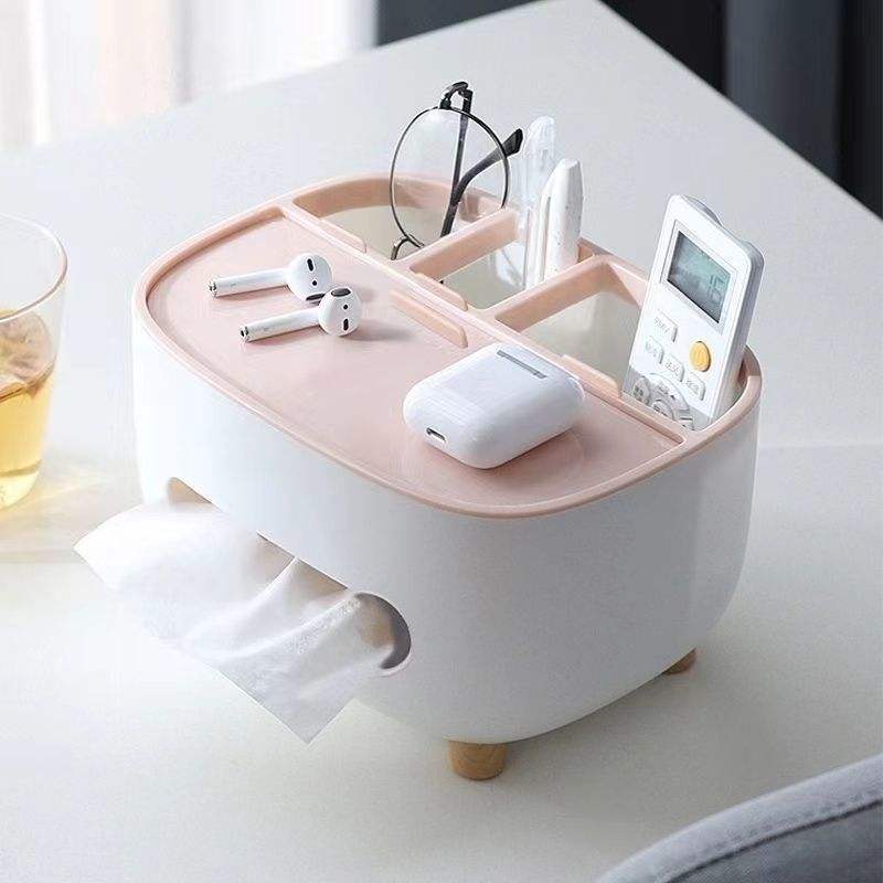 Caja de pañuelos multifuncional con organizador para almacenamiento en el hogar, oficina, escritorio, color rosa nórdico