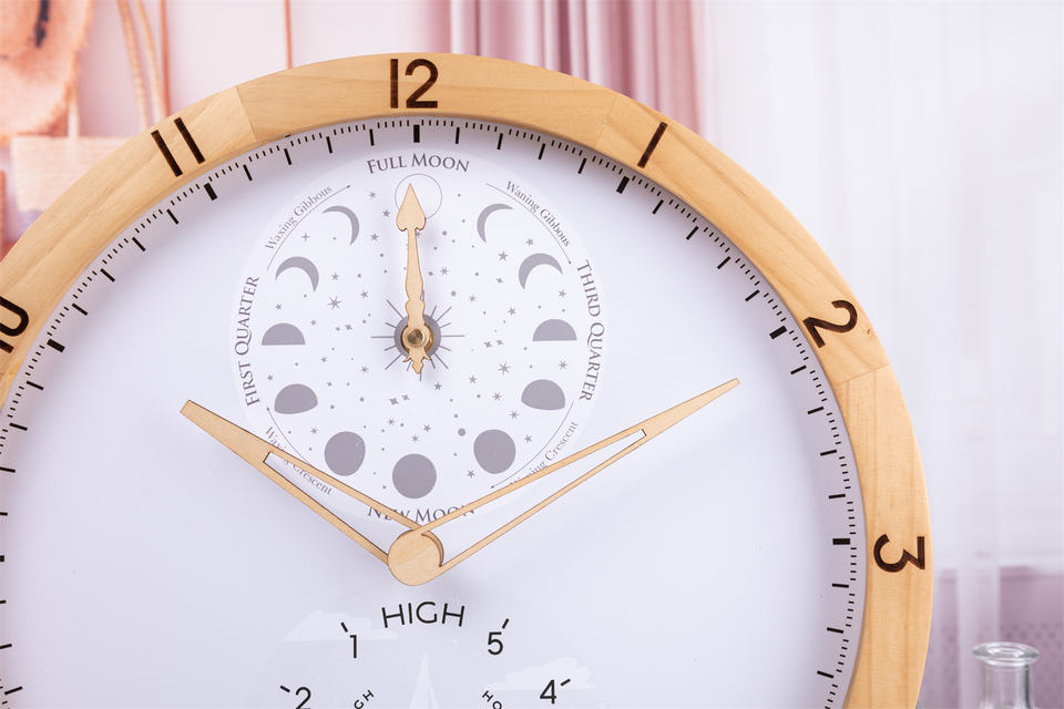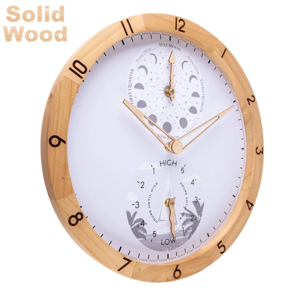 Reloj de pared multifuncional, pantalla Lunar y de marea, marco de madera, reloj de pared moderno para decoración europea del hogar