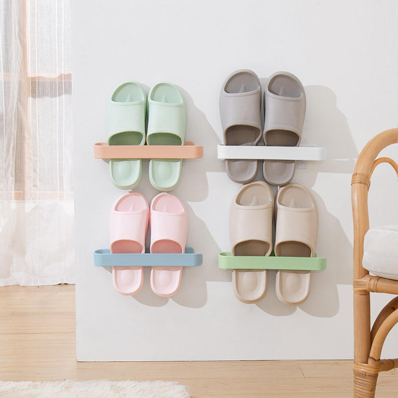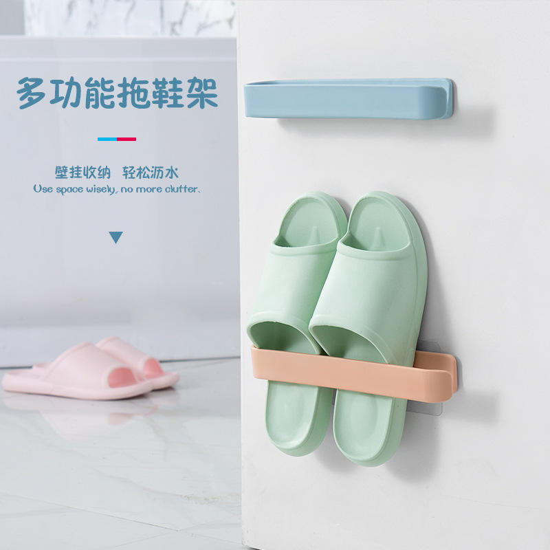 Multi Functional Wall Mounted Shoe Rack For Bathroom Storage With Adhesive Installation Durable Design Rectangle Shape Blue