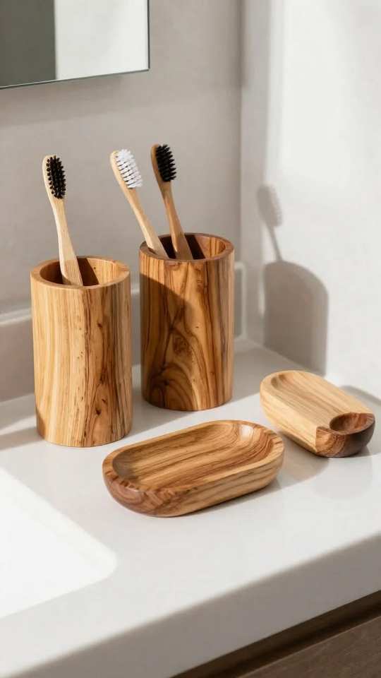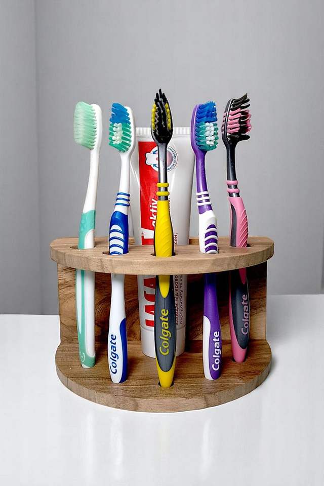 Soporte multifuncional de madera para cepillos de dientes, pasta dental, maquinillas de afeitar y almacenamiento de brochas de maquillaje.