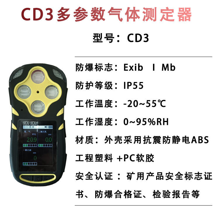 Multi Gas Detector Cd3 Cd4a Cd4b Carbon Dioxide Sulfur Dioxide Oxygen Hydrogen Sulfide Coal Safety High Accuracy