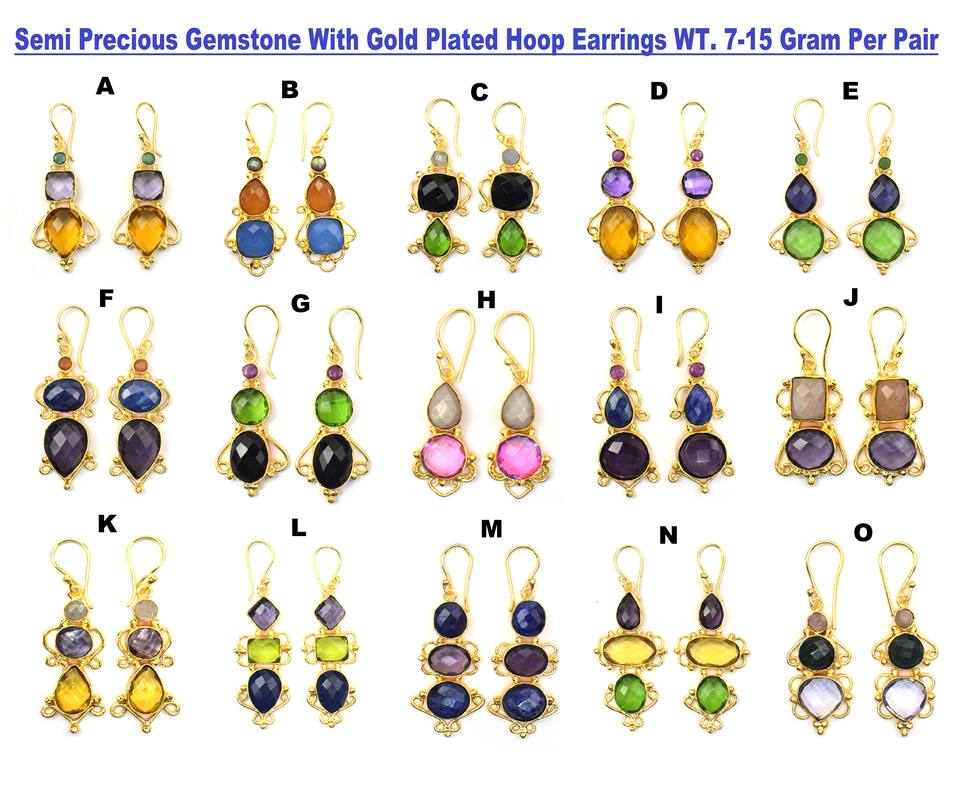 Nombre del Producto:Pendientes de aro hechos a mano con múltiples gemas y baño de oro