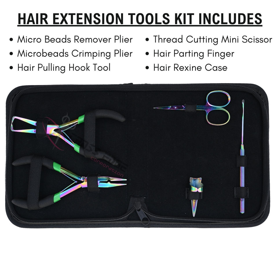 Ventaja:Kit de estilista de extensiones de cabello al por mayor con juego de alicates de microperlas