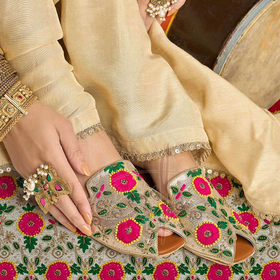Khussa con Bordado Multicabezal, Delicado Trabajo con Tilla, Hilos Coloridos, Suela de Cuero Genuino Antideslizante, Personalizable y a la Moda
