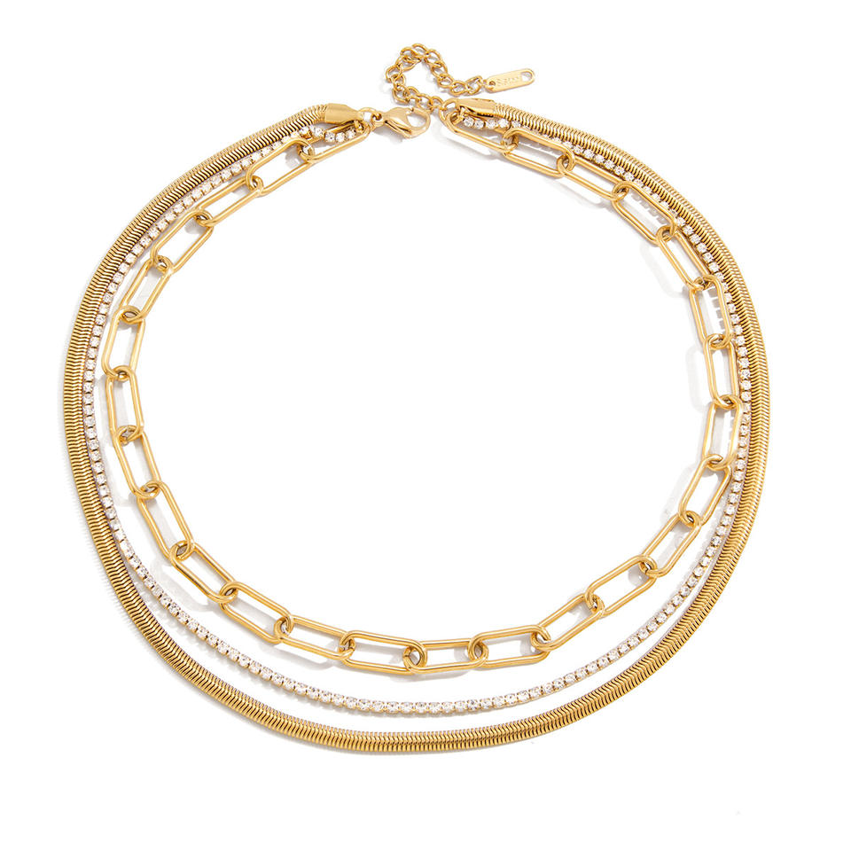 Collar de oro de varias capas con cadena de diamantes para mujer, uso diario, diseño geométrico, origen Yiwu