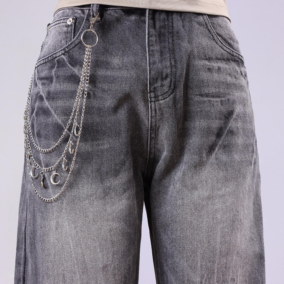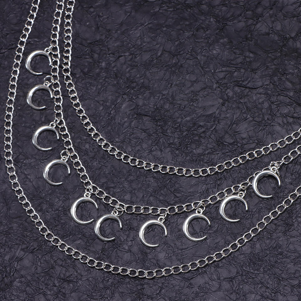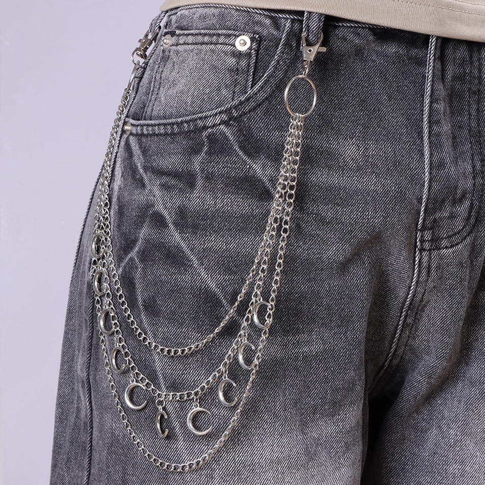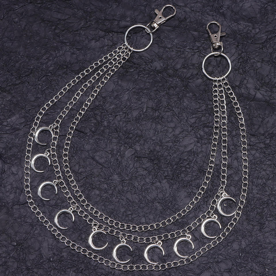 Cadena de cintura multicapa con diseño de luna, cadena metálica para jeans, decoración de mezclilla, accesorio de estilo urbano hip hop, cadena para pantalones de aleación de zinc
