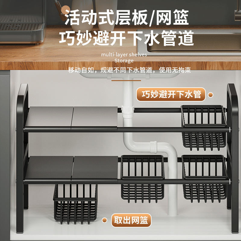 Estante de almacenamiento multicapa para debajo del fregadero con estantes y cestas ajustables para organizadores de cocina