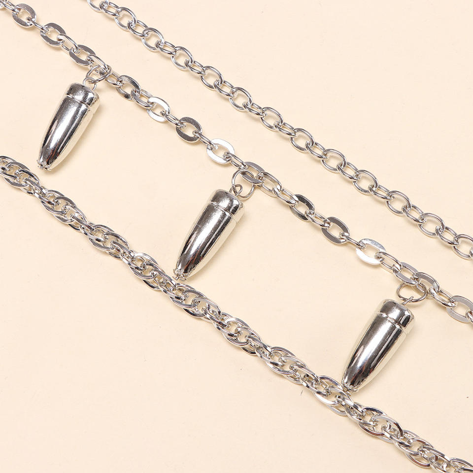 color:Multi-layered white K bullet pants chain