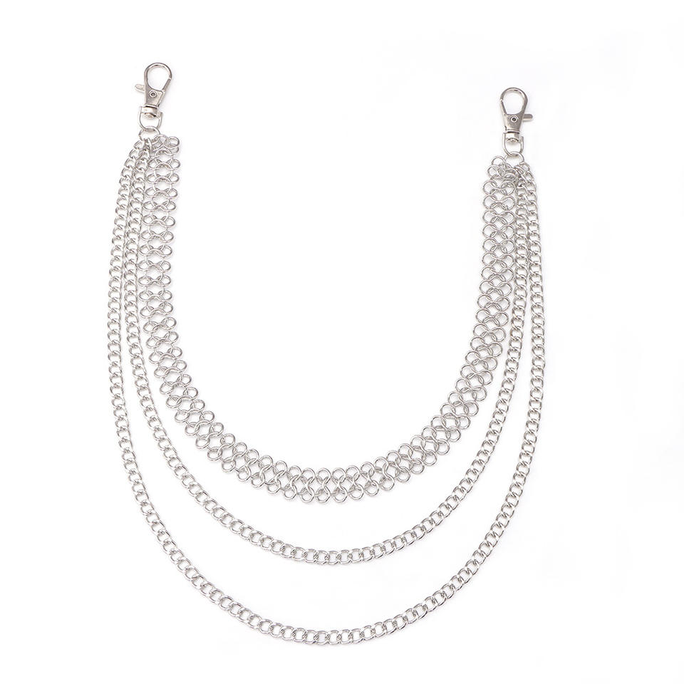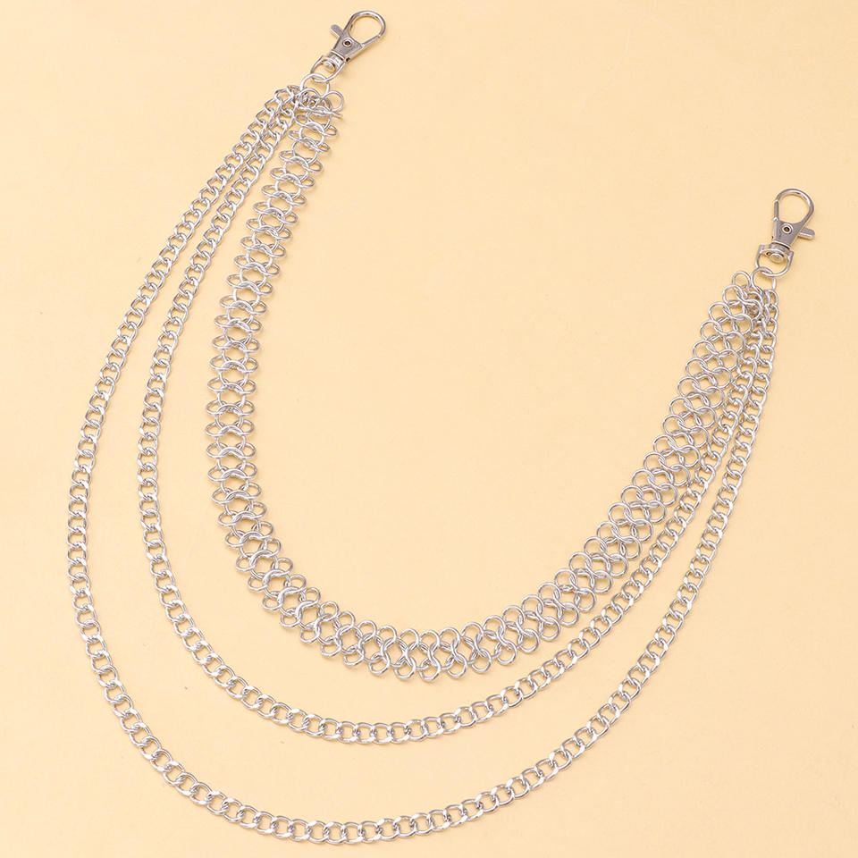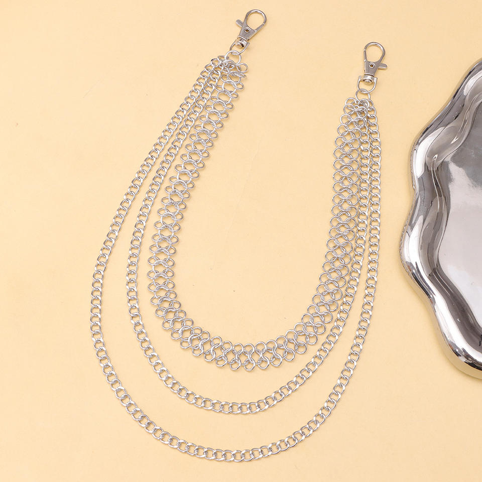 Cadena de cintura metálica de varias capas, estilo tibetano plateado, unisex, para ropa vaquera, uso diario.