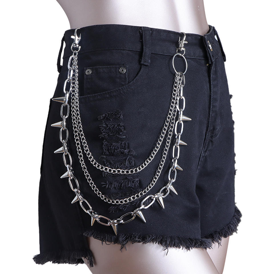 Cadena de cintura de varias capas con púas, estilo punk, de aleación de zinc, informal, para hombre y mujer