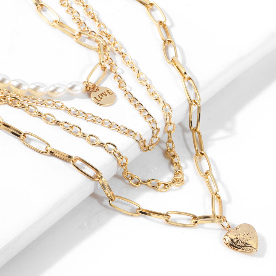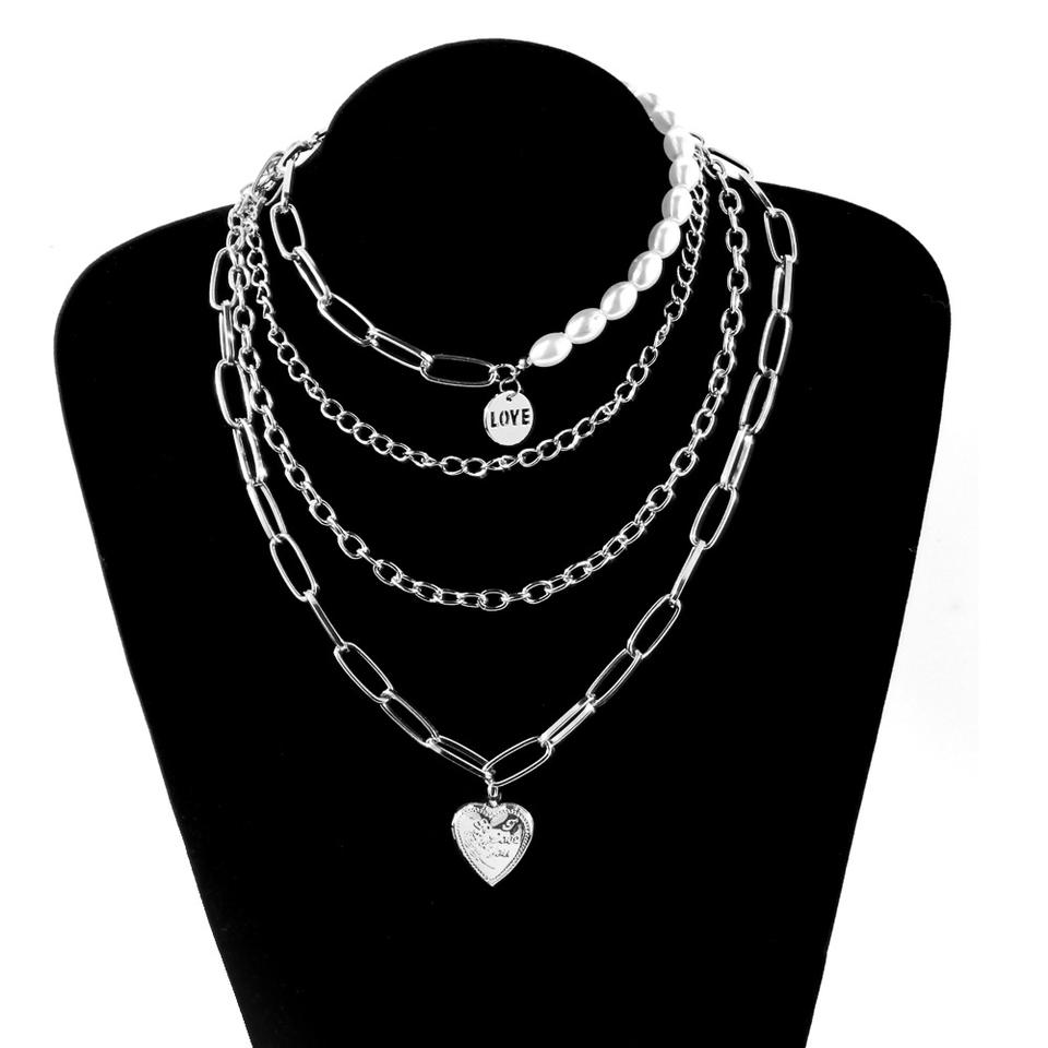 Collar de Cadena de Varias Capas con Colgante de Corazón para Mujer/Hombre, Collar con Colgante de Candado Punk Rock, Joyería Emo Grunge Goth