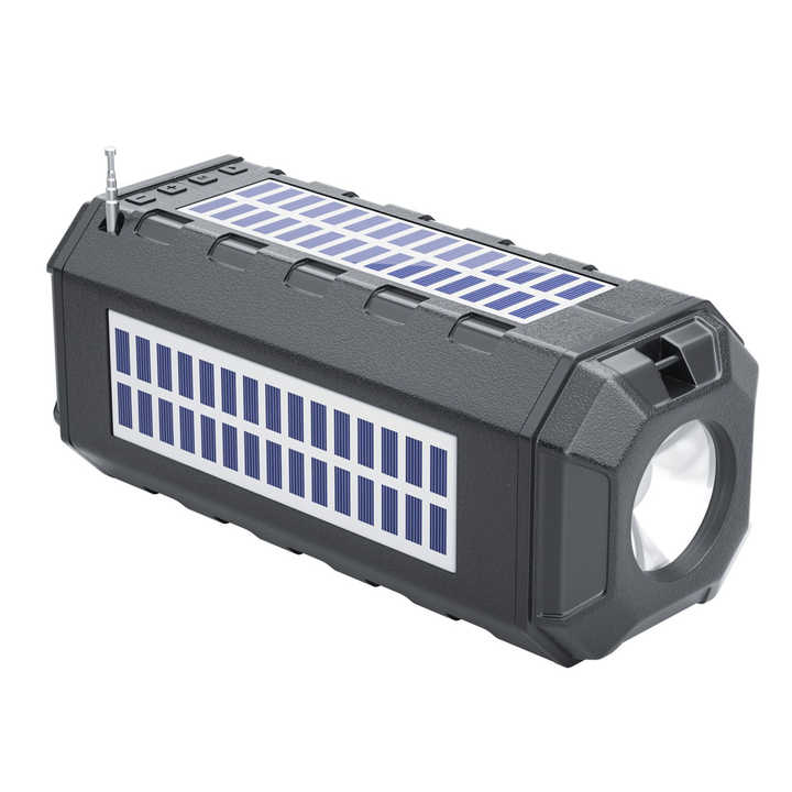 Altavoz solar multimodo compatible con tarjeta TF reproducción USB FM, altavoz inalámbrico portátil con linterna para viajes al aire libre