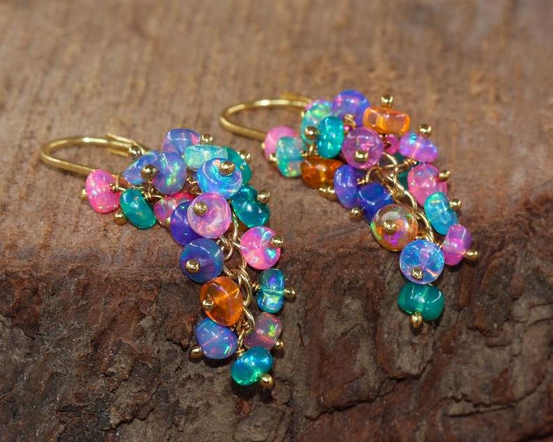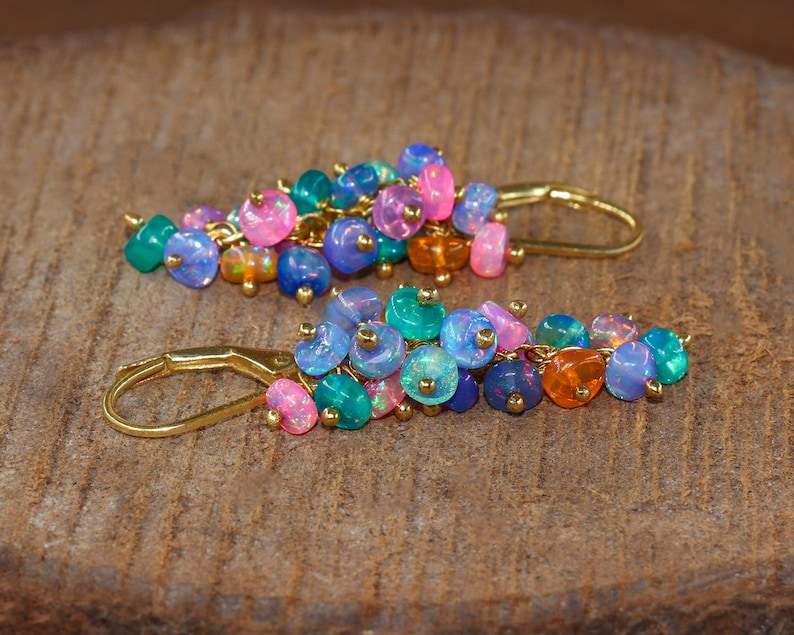Keyword:Multi Fire Opal Beaded Cluster Earrings Shine With