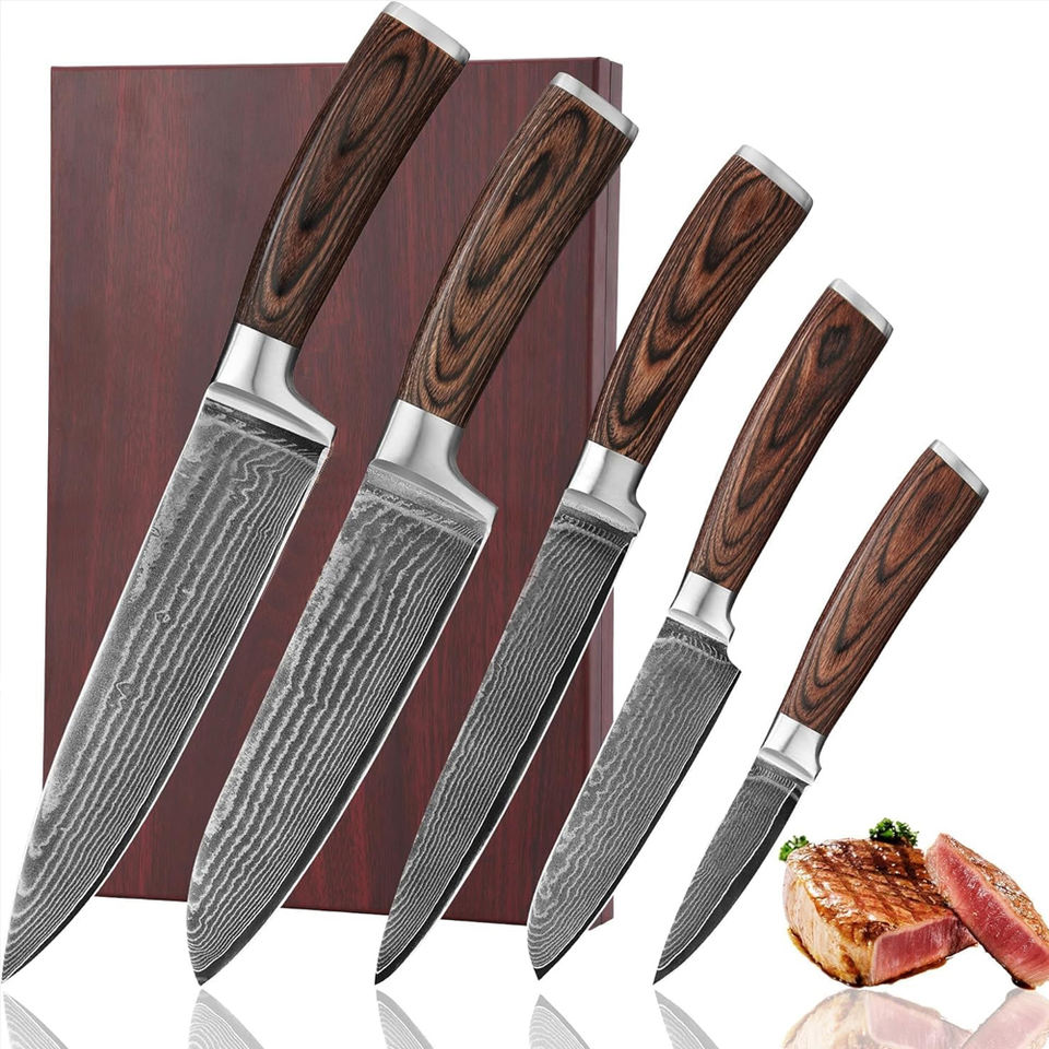 Juego de cuchillos de cocina de acero de Damasco de varias piezas, colección de cuchillos de cocina profesionales para profesionales culinarios