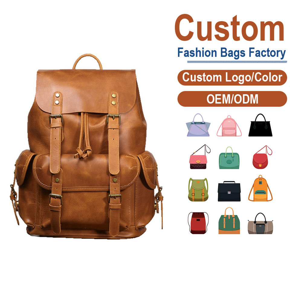 Mochila de cuero genuino con múltiples bolsillos y cierre con cordón | Venta al por Mayor Directa de Fábrica para Startups de Comercio Electrónico