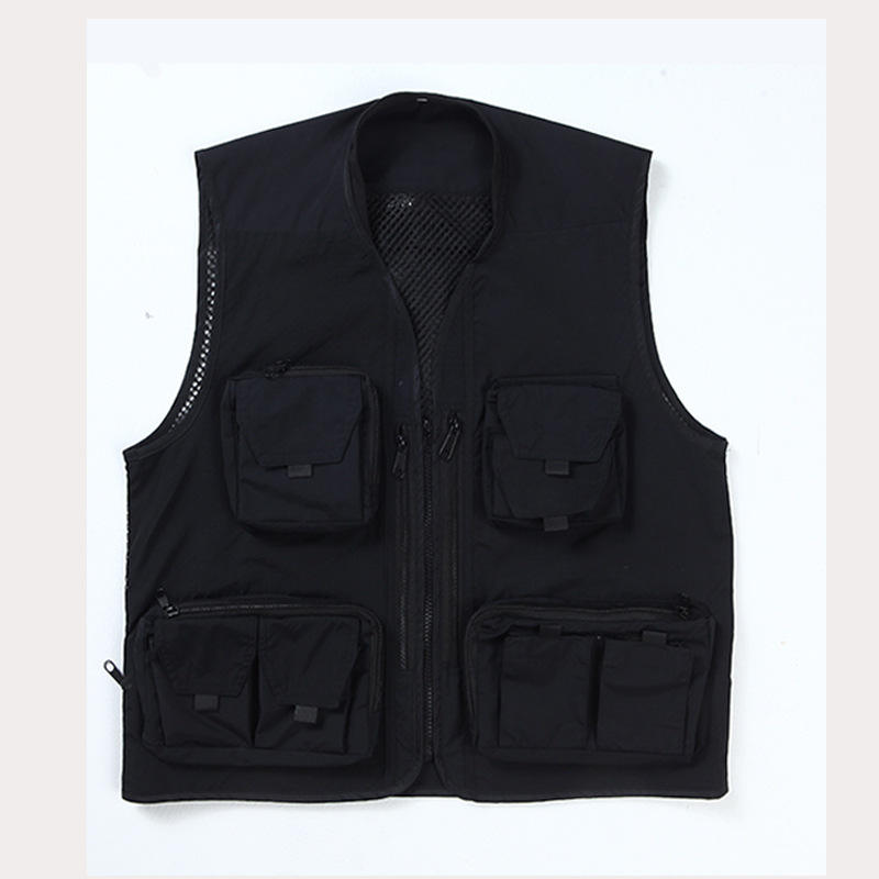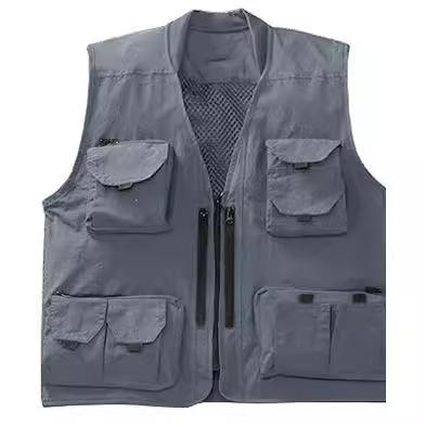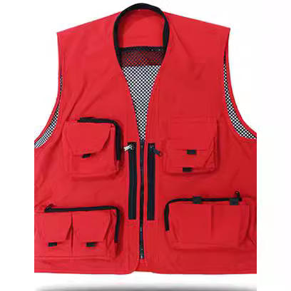 Multi Pocket Photography Vest Red Polyester Workwear With Zipper And Pockets For Outdoor Use
